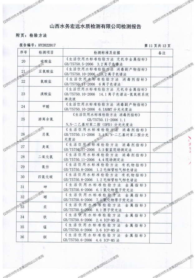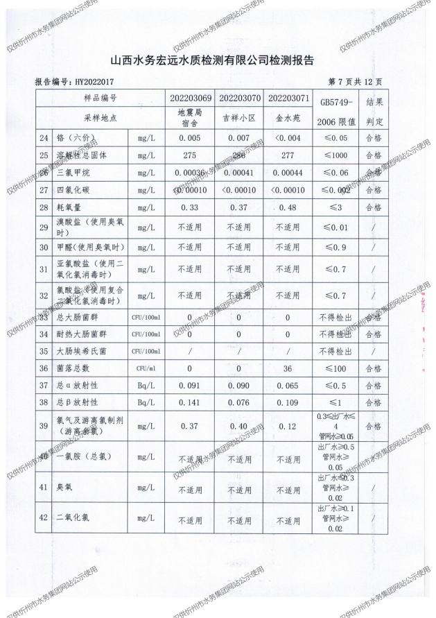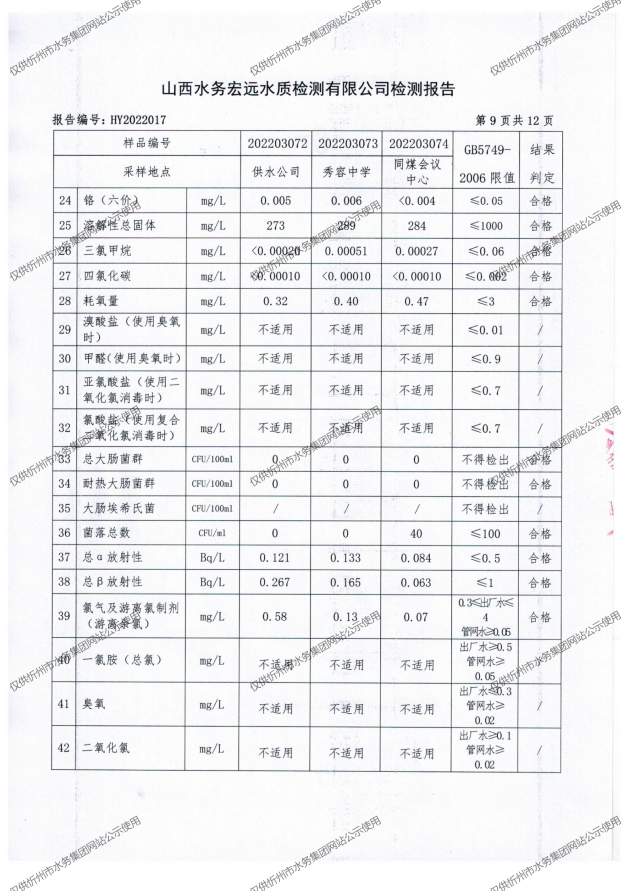 忻州城區(qū)公共供水水源水、出廠水、管網(wǎng)水、管網(wǎng)末梢水2022年3月份水質(zhì)信息公示